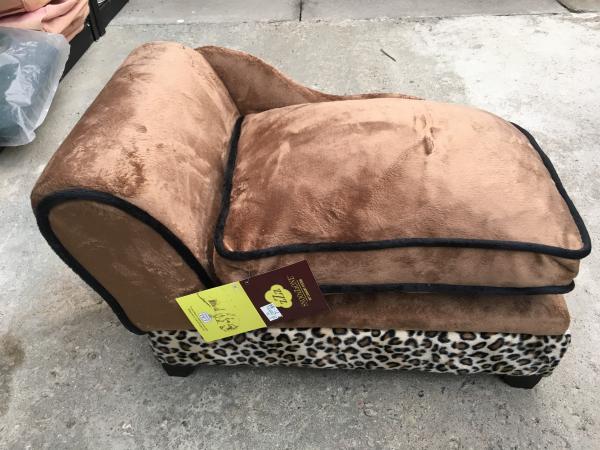 Or how about this one - a fawn fur chaise longue for your dog - complete with black piping and leopard skin base